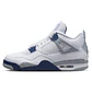 Seen on popular Jordan models like the Air Jordan 1 and Air Jordan 6 , JB is now applying the "Midnight Navy" colorway to the popular Air Jordan 4 silhouette. The pair comes in a white leather base with navy accents on the outsole and eyestays. The cement print is also seen on the wings and midsole. Completing the pair is signature Jumpman branding on the tongue, along with a visible Air unit in the heel.