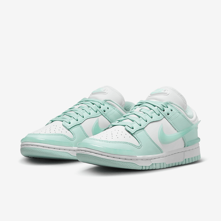 Esta silhueta vem construída em couro com línguas de malha. Os detalhes dignos de nota incluem um Swoosh estendido em cada lado, semelhante aos Swooshes das colaborações AMBUSH x Nike. A marca Nike com joias aparece nas línguas, enquanto os calcanhares são substituídos por tubos de plástico vistos nas biqueiras.
